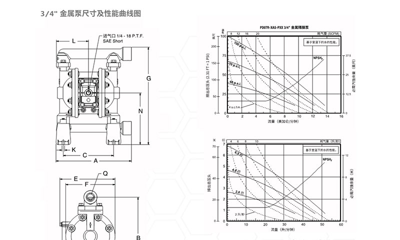 1:1比率最大流量:51.5LPM進氣口(內螺紋):1/4”流體進口:3/4“,螺紋流體出口:3/4”,螺紋最大工作壓力:6.9BAR懸浮固體顆粒最大直徑:2.···