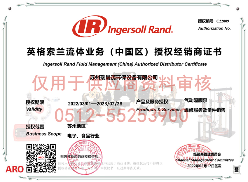 ARO英格索蘭代理證書